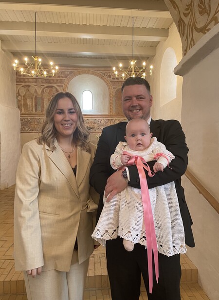 Den 21. marts 2026 blev Elina Sofia døbt i Give Kirke – en dag, der skulle vise sig at få særlig betydning for familien.